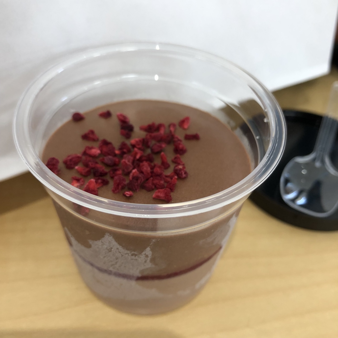 少し溶け出すとふしゅふしゅの食感でアイスということを忘れます。フランボワーズソースそんなに入ってなさそうなのにしっかり味がします。チョコアイスそうでもない私でも美味しくいただけました。