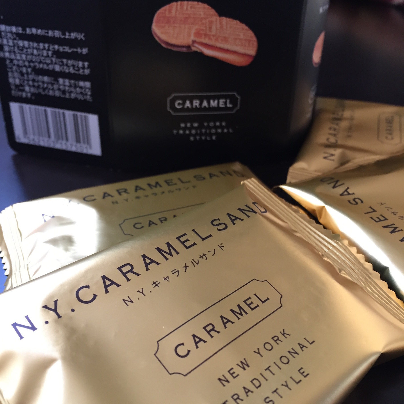 バター風味のサクサクのクッキーの間にチョコレート、さらに甘いキャラメルがとろ〜〜と!